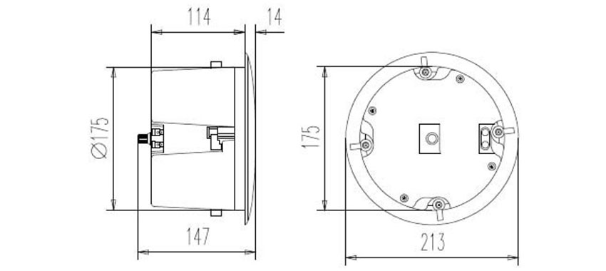 特性• 二分频同轴吸顶音箱 • 100V定压模式和8Ω定阻模式可选 • 便于安装